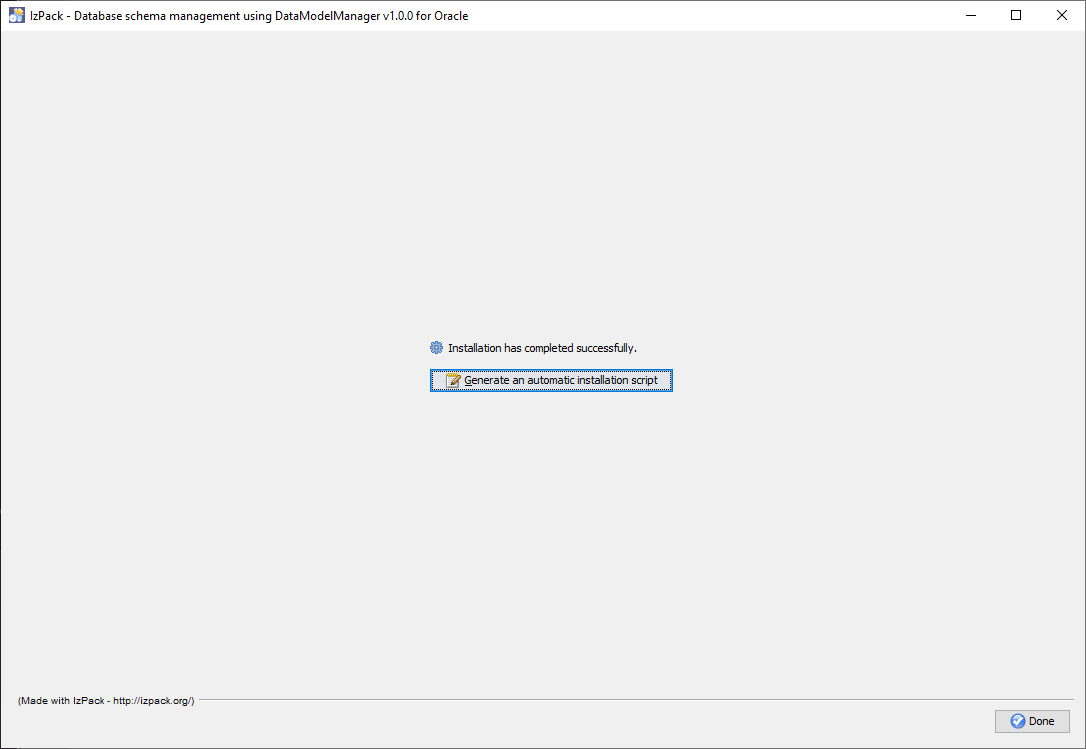 In the finish interface, click Done to close the Data Model Manager GUI, completing the installation.