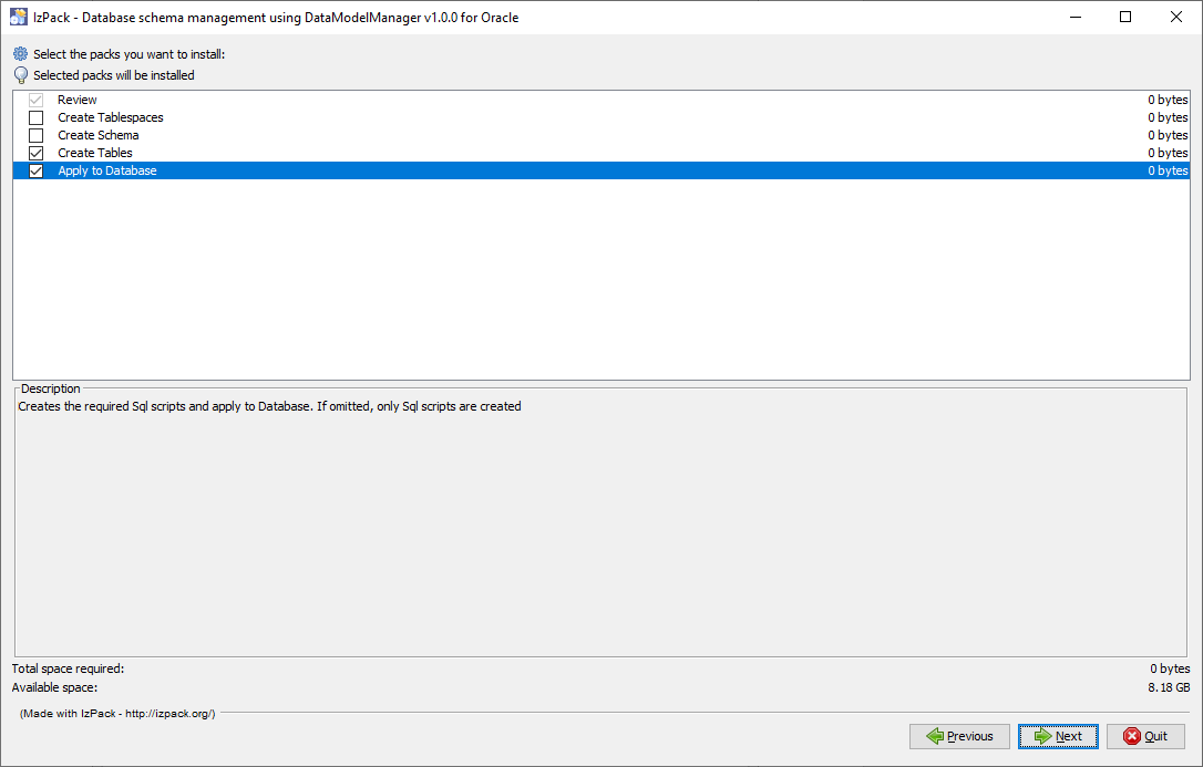 - Apply to Database: Applies the release to your Data Model. Leave this option unchecked if you want to generate scripts only and apply them manually.