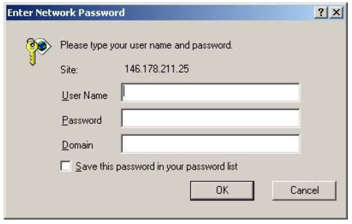 - On your keyboard, press Enter. When the web browser connects, the Enter Network Password dialog box appears.